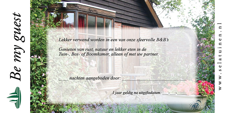 Een bourgondische cadeaubon. Een overnachting in B&B de Tuinkamer.