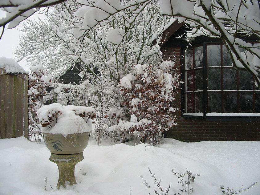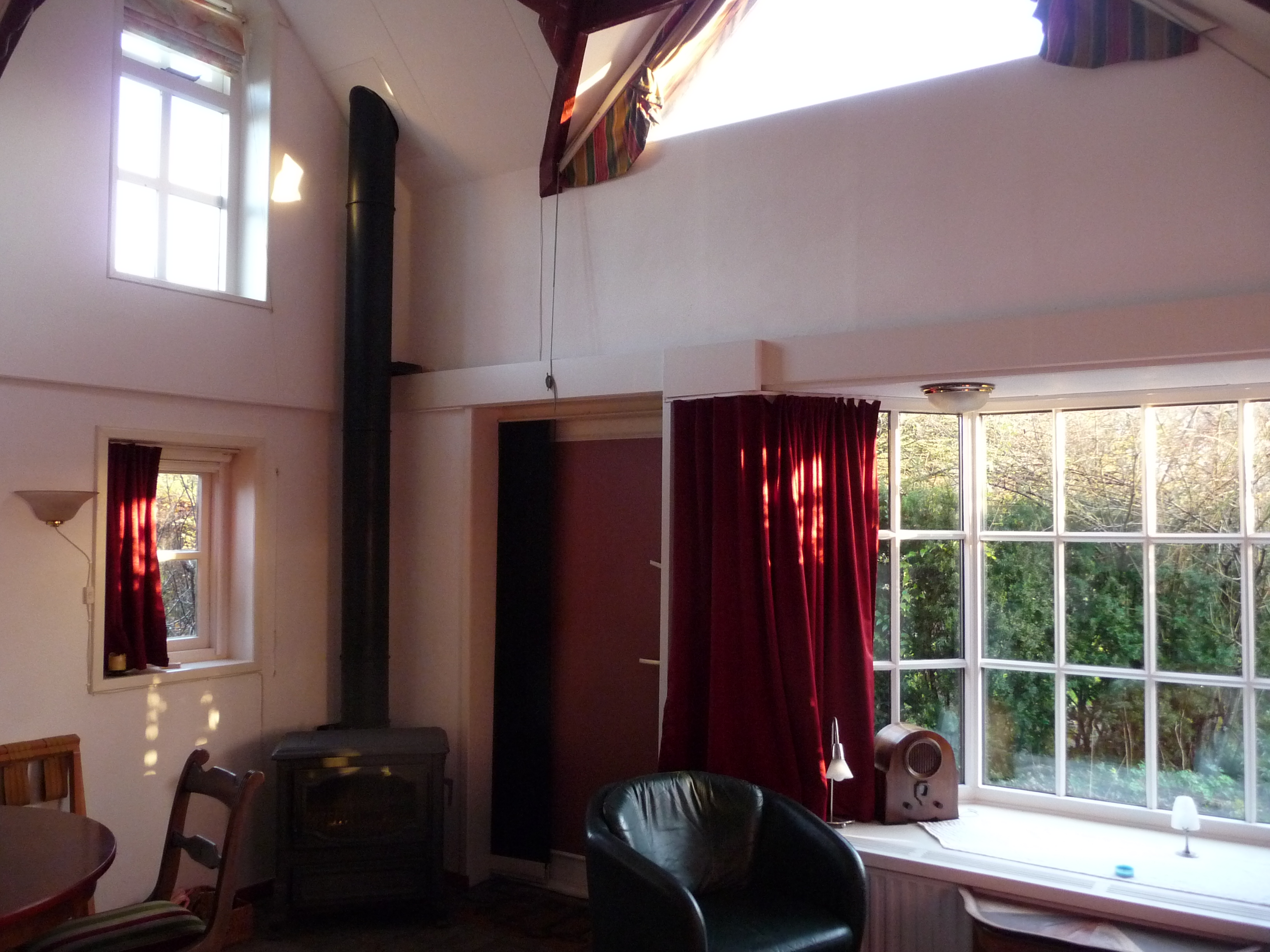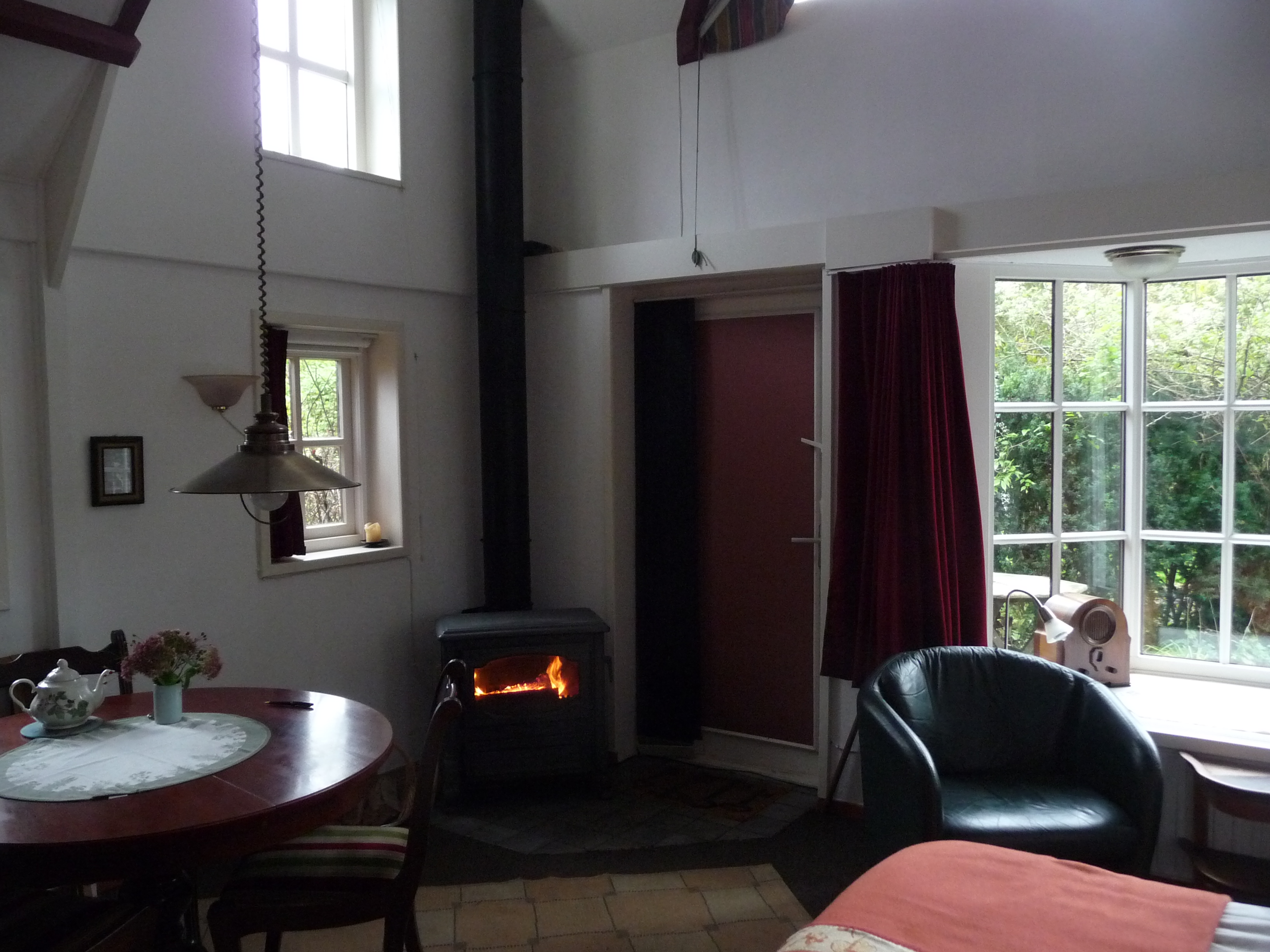 Omringd door oude bomen en heestergroen ligt De Tuinkamer. Nu volledig gerenoveerd en met houtkachel. Van achter het erkerraam kijkt onze gast uit