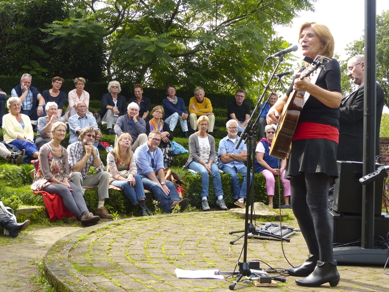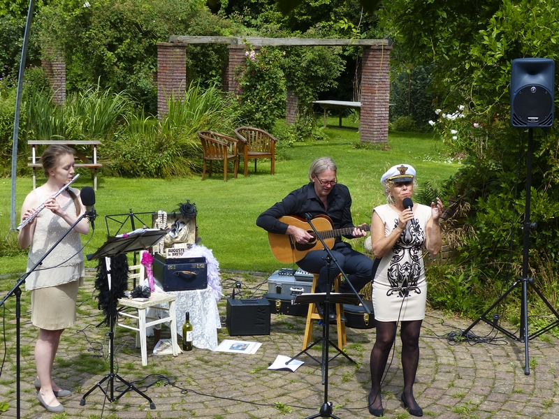 26 juli; CAMADOUMa boîte à chansons. Franse chansons, niet eerder gehoord in de Selatuinen. Met zon waren we even een middag in Frankrijk.